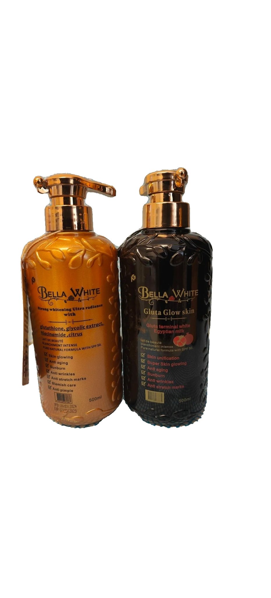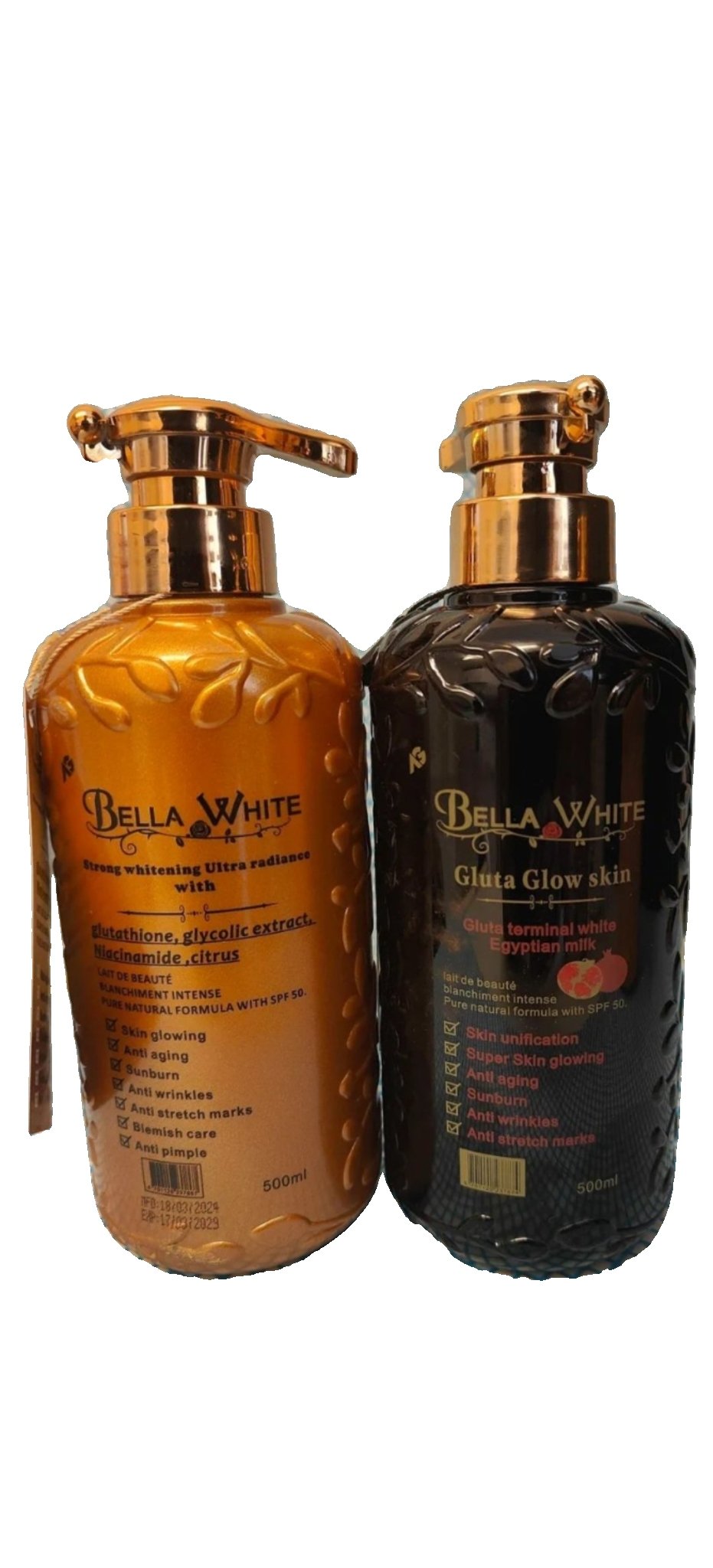 Bella White Lotion 500ml is designed to provide hydration and a radiant glow with its Gluta Glow formula and Egyptian Milk infusion. This lightweight and fast-absorbing lotion helps keep your skin soft, smooth, and moisturized throughout the day.